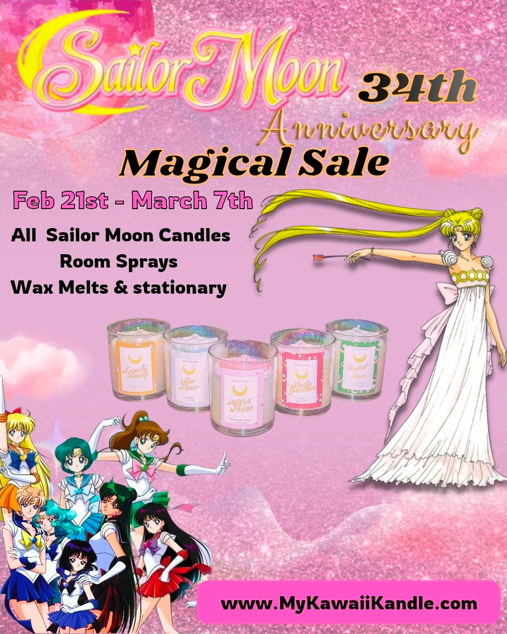 All Sailor Moon Theme items will be 50% off in honor of their 34th Anniversary release date in Japan. My Sailor Moon Collection is what inspired me to really start this and I'm excited to continue spreading the love & beauty that is Sailor Moon.